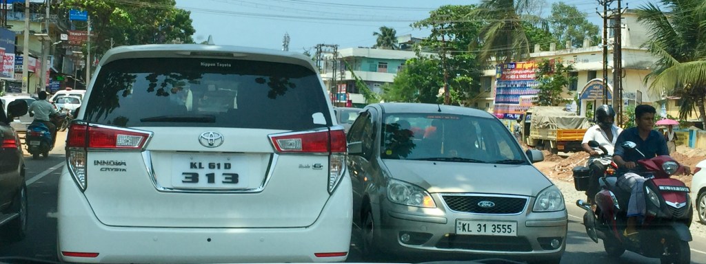 I think faith plays a role on Indian roads in more than just a belief in the other drivers’ skill. Perhaps some is Hindu fatalism; if it is your time, it is your time, and perhaps your next incarnation will be better. But trucks, buses and tuk-tuks are as likely in Kerala to display Christian religious icons and names as Hindu ones. I even saw one “Bishmillah” across the windshield of a truck. Faith is a strong part of the culture and I suppose that extends to the roads.