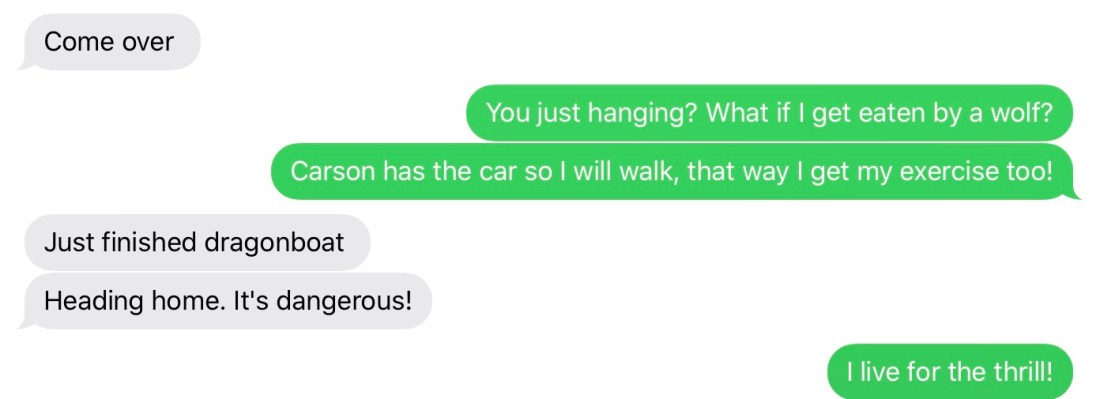 Several of my friends were concerned about how I was doing, having had such a close encounter. It might have been different if I had looked backwards and seen the wolf, but I just walked into my sister’s house and had no idea the wolf was there until a few minutes later when we asked the police, who had suddenly appeared in the yard, what was happening?