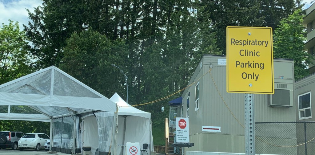If you need to wait, outside a testing room or lab, every second chair is taped off for distancing. Most staff are wearing masks. Several doctors were not, but that was after I had a negative Covid test. After the first phone consultation with my doctor she sent me to a respiratory centre, a trailer in the back parking lot of the hospital, where a physician in full PPE took the swab as part of my examination.