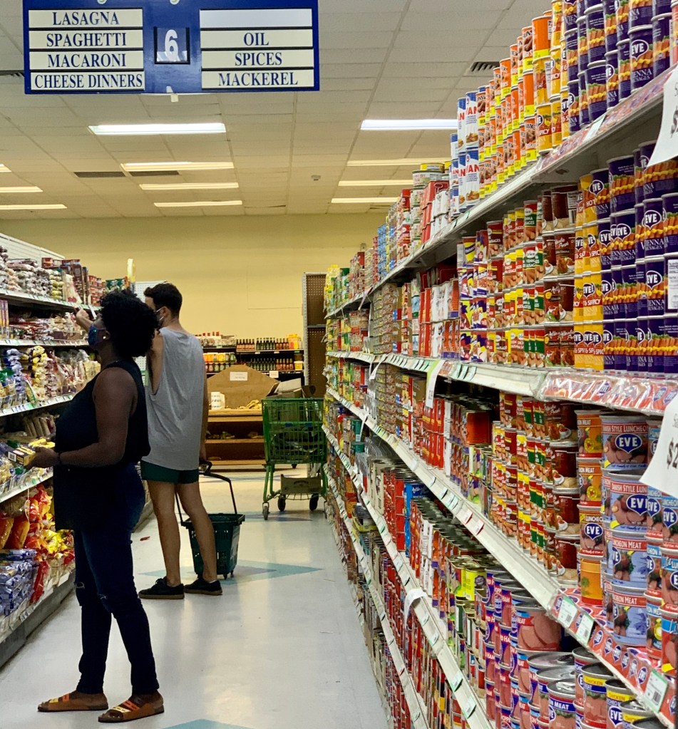 We finish our shopping at the supermarket, a full service store with a pharmacy and a man at the door who sprays our hands with sanitizer as he hands us a cart. Masks are mandatory. We can get most anything we want, although some items are out of stock, or expensive. Imported hard liquor is in a locked case, but the rum is on the shelf and cheaper than the same size bottle of wine. We decide to buy some ginger ale to make Dark and Stormies tonight.