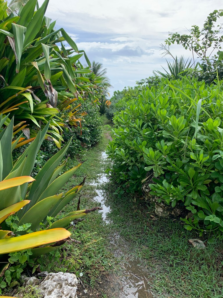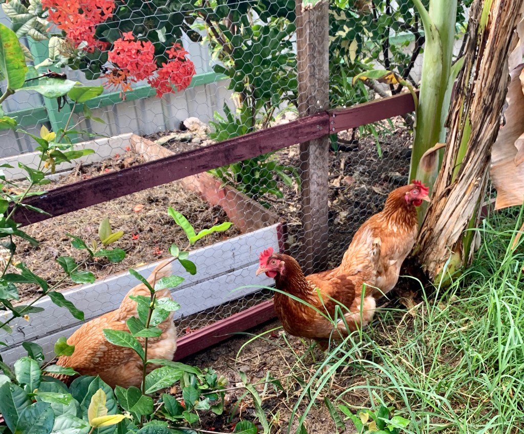 When Scott has finished his peeling and chopping I head to the neighbour’s. I bring scraps for his chickens and coffee grounds for his garden. I’m working on finding a place for recycling as I can’t bear to throw it all in the garbage, the way most here seem to. After a month, the corner of the kitchen looks like the aftermath of an all-night party, so I remind myself to call B’s recycling on Monday and work something out. Without a car, it’s difficult to take bottles to the depot, half an island away.