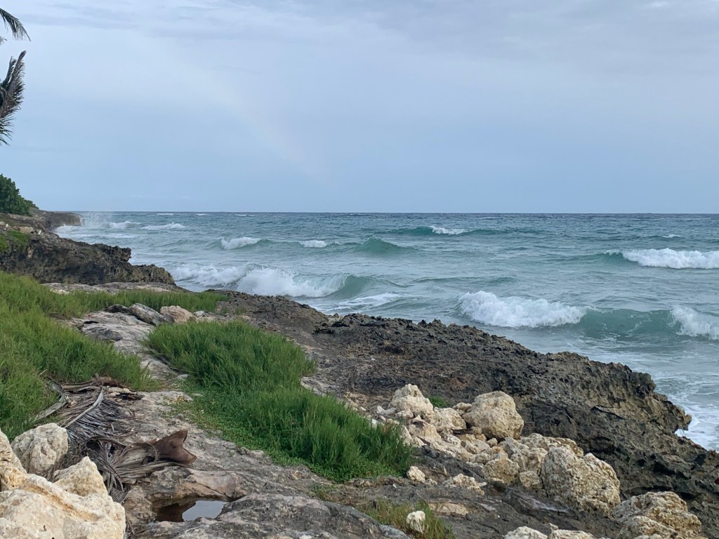 Sometimes the wind in the palm trees matches the surf, and I still delight in the pounding rain of a tropical rainstorm, not just because I know it will cool the air. A month ago there was wild thunder and lightening to go with it.