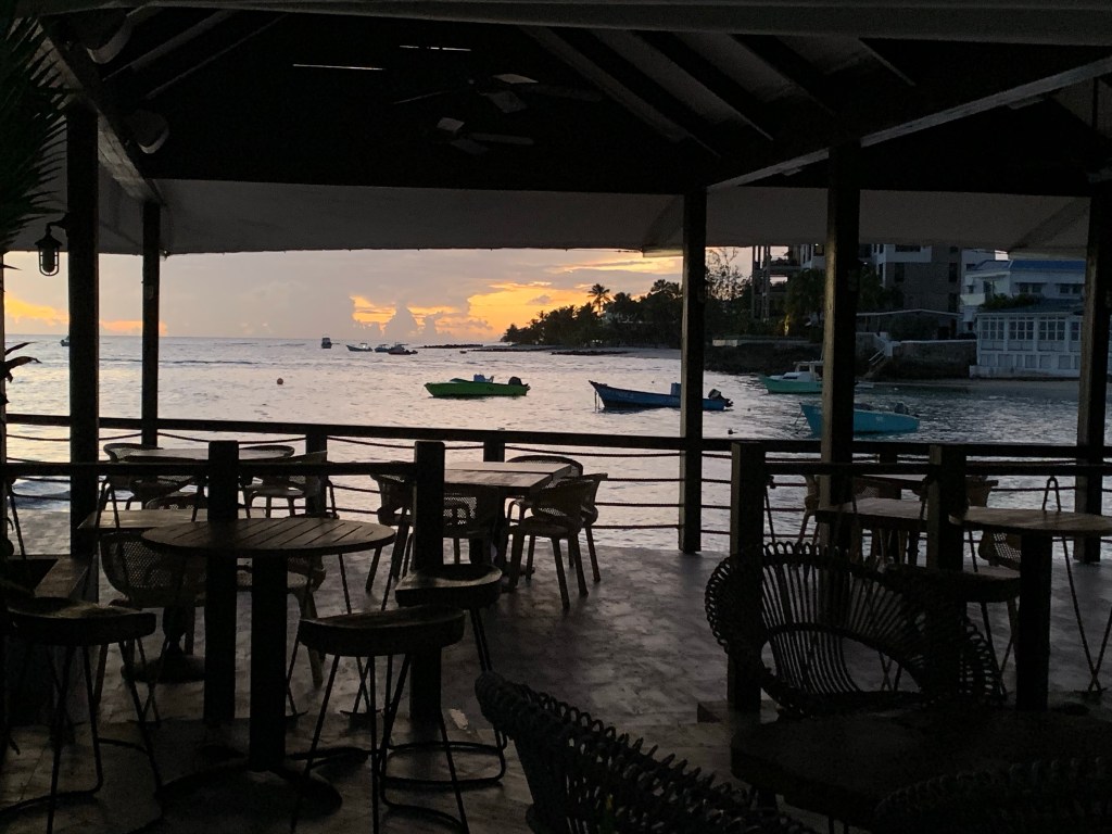 If the restaurants had been open we might not have made our first visit to a local rum shop, nor had our first cutter at Cuzz’s fish stand. I have now been swimming in the caves and will soon take the train at Saint Nicholas Abbey, but my favourite activity is still the one we finished that first tour with: a drink and a swim at the beach, watching the sunset.