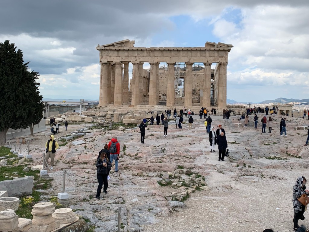 It was, indeed, snow. There were just a few minutes of light flurries, but this was not what we had expected in March! When we’d planned the trip a month before, Athens was already t-shirt weather, and here we were, wearing wooly hats and down jackets.