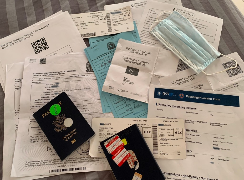 Scott and I went to France to ski at the end of February, starting and ending in London, with a side trip to Greece. We were in the middle of changing requirements as Omnicron rose and fell. At one point France banned non-essential travel, and we worried about how we could get our Passe Sanitaire, the Covid passport that would allow us to ride ski lifts and get into restaurants and bars. Yet by the time we were in the Alps no one was asking for the pass. The UK locator form went from essential and checked, to not checked, to no longer required over the course of our month long travels. When we flew back to Barbados, masks were no longer required on the plane, we only needed a rapid antigen test, not a PCR, and there was no quarantine on arrival.