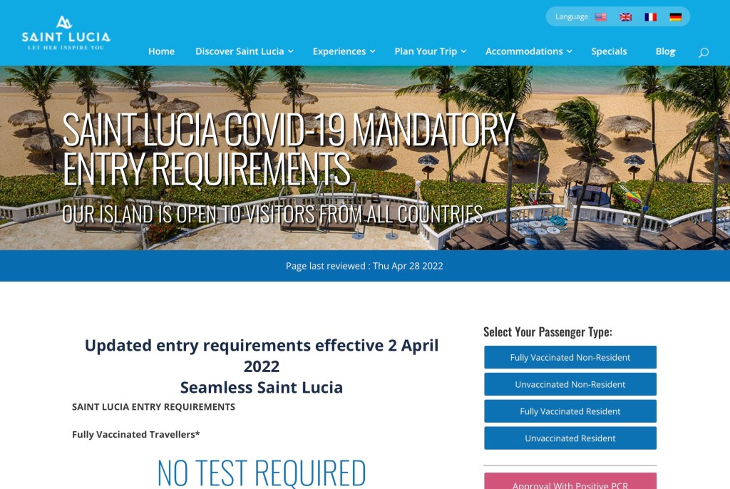 “Saint Lucia dropped their entry test and quarantine requirement for vaccinated travellers!”