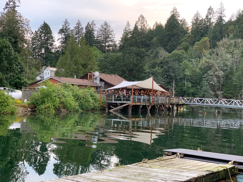 Helen and Crosbie are waiting for us when we arrive at the Genoa Bay Cafe. I introduce my new husband, Scott, and our friend Richard from Barbados. I am enjoying the moment, but the memories are thick, thick. There were many dinners here with these friends, and others; Mother’s Day brunches where my children and their cousins ran on the docks, looking for starfish and seals, and their long-gone grandmother watched from the patio, occasionally shrieking, sure they would fall in.