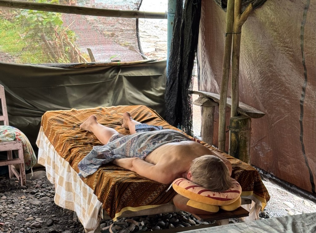 The Balinese woman massaging me says nothing. Perhaps it’s professional discretion, perhaps it’s because she has very little English.
